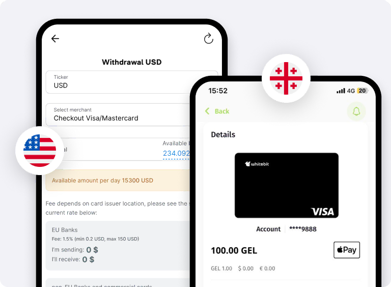 Convert your digital assets to cash and withdraw USD, EUR or GBP.